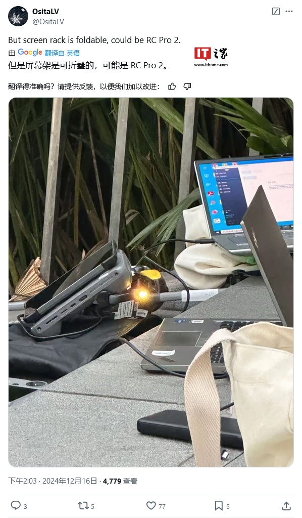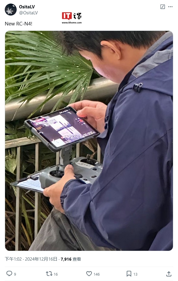 IT之家 12 月 17 日消息,消息源 OsitaLV 和 Jasper Ellens 昨日(12 月 16 日)在 X 平台发布推文,曝料称大疆(DJI)正研发新型控制器,图片显示升高的显示屏支架,以及多种专业级连接选项,引发广泛关注。