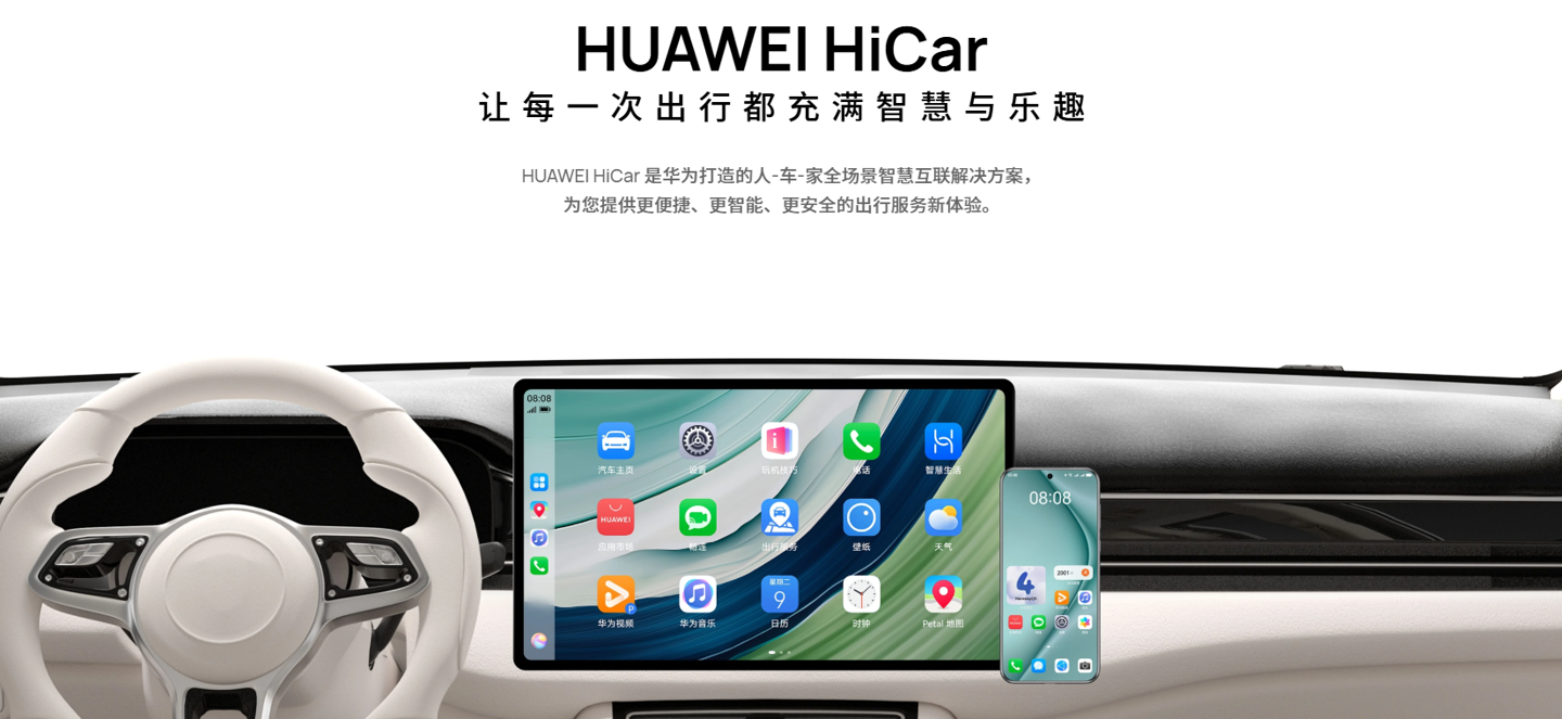 据介绍,HiCar 智行是华为公司推出的手机和汽车互联产品,通过简单的连接,用户即可在驾驶时通过车机来使用手机的导航、音乐、电话、语音交互等功能。