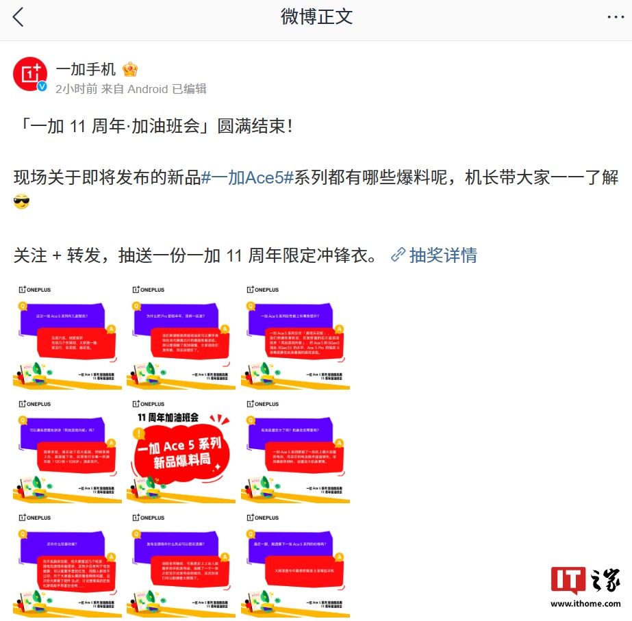 IT之家 12 月 17 日消息,「一加 11 周年・加油班会」活动今日结束,官方今日放出一加 Ace 系列新机“爆料”,其中提到一加 Ace 5 系列新机“大概率是今年最香的骁龙 8 至尊版手机”。