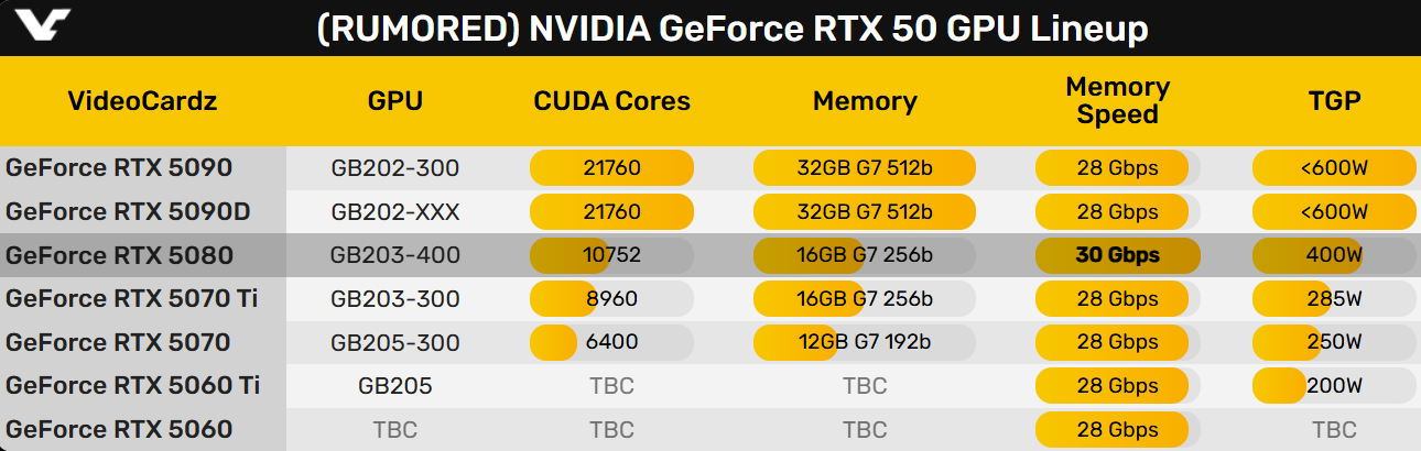 搭配256-bit位宽,RTX 5080的显存带宽将有960GB/s,当然这和512-bit位宽的RTX 5090/5090D是没法比的,后者带宽高达1792GB/s。