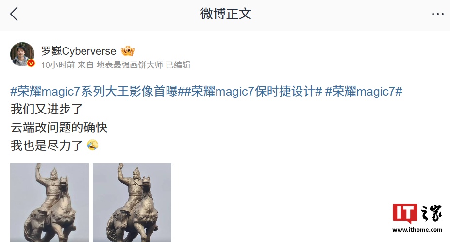 罗巍还在评论区中回复了部分网友的问题:针对荣耀手机以后是否会支持放大至 200 倍,他表示“有可能哦”;针对 12 倍以内长焦的后续优化计划,他称“端侧的我们也会有优化推出,不过比云测慢”。