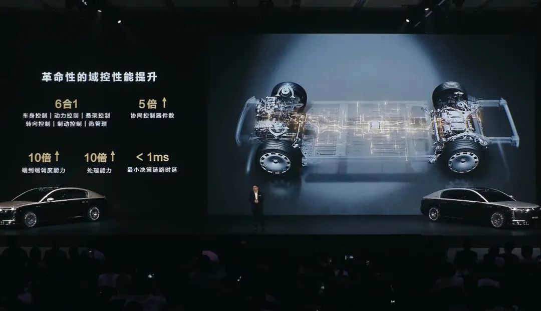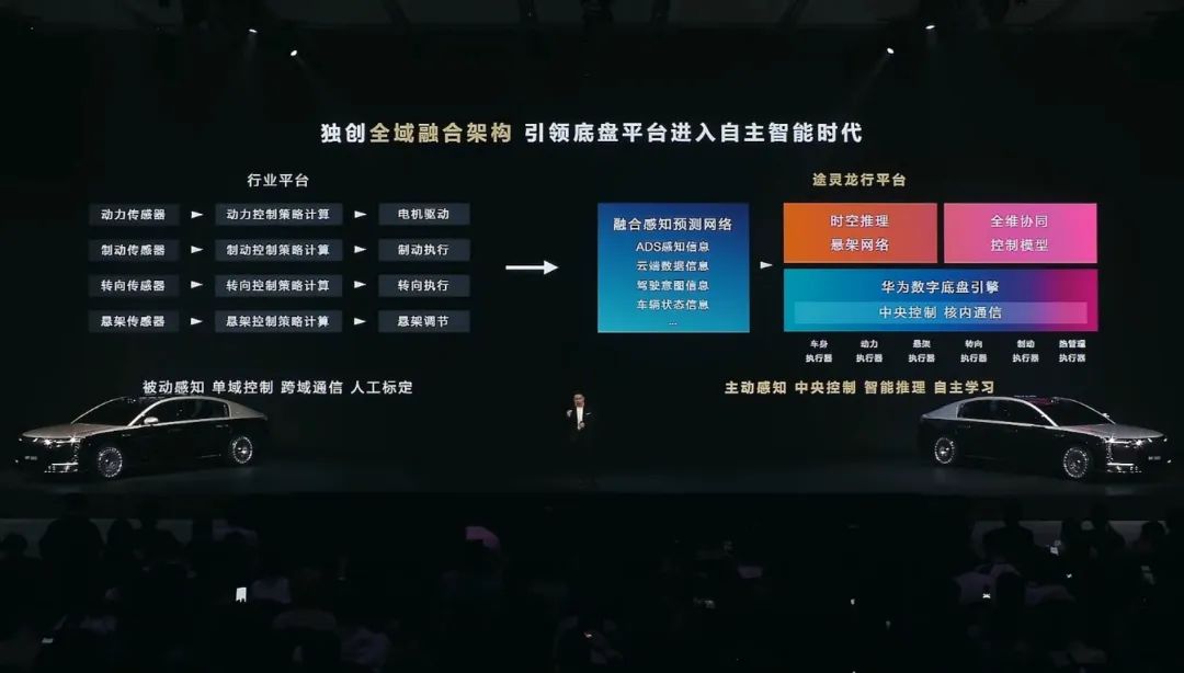 这次发布会中最能够体现鸿蒙智行技术实力的,是智能化底盘途灵龙行平台。过去,一辆汽车的动力、转向、悬挂、制动等系统互不统属、各干各的。途灵龙行平台的做法是,将这些系统全域融合,做到“主动感知+中央控制+智能推理+自主学习”,融合车身控制、动力、悬架、转向、制动、热管理等6大系统,实现了底盘的智能化,带来了更好的驾控体验。