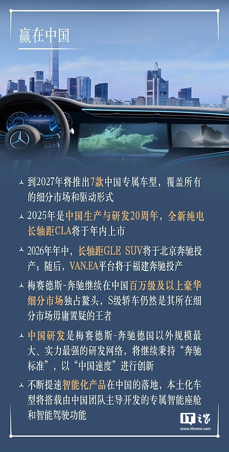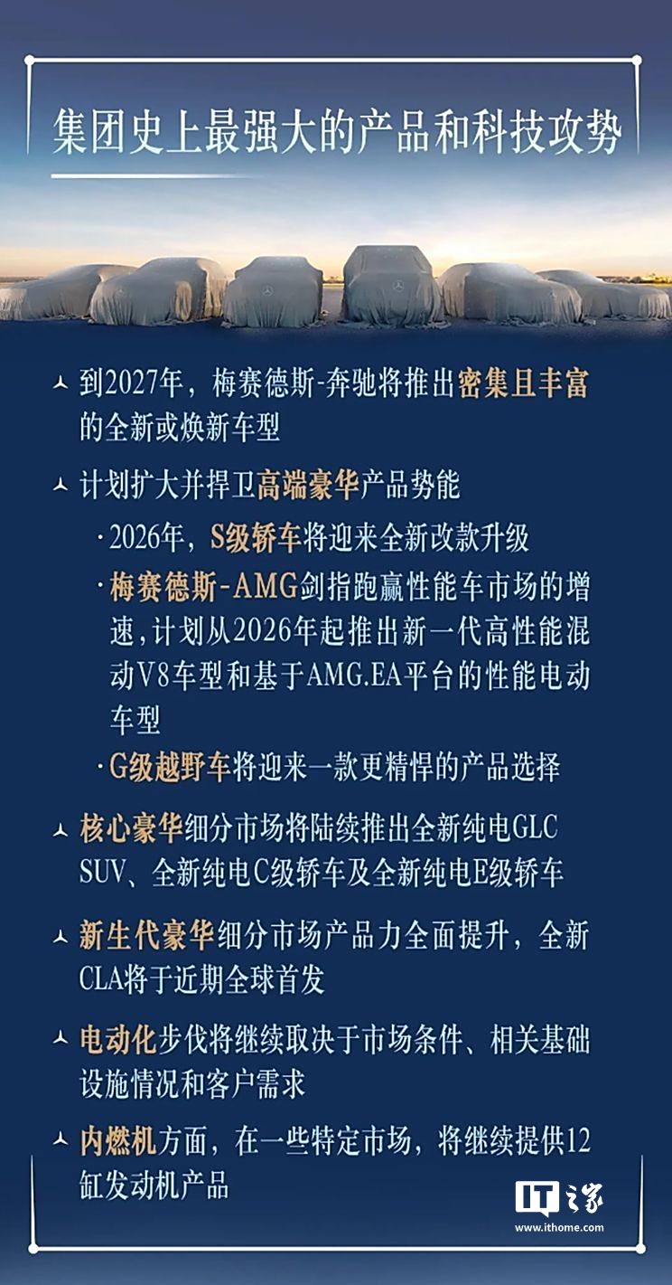 回顾奔驰此前的新产品计划,2026 年将是其产品大年。奔驰 S 级将迎来大改款升级,同时,梅赛德斯-AMG 独立研发的高性能纯电动 SUV 以及国产 GLE 长轴距版也将推出。此外,全新 GLC 纯电、C 级纯电以及 E 级纯电车型也在规划之中。而作为最先发布的全新奔驰 CLA,还将针对中国市场推出长轴距版。