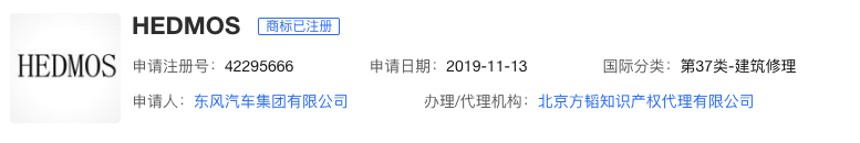 IT之家查询发现,东风早在 2019 年就注册了“示界”商标。据 EV 视界报道,1 月 13 日神龙公司经销商大会透露,“示界”是旗下品牌,英文“HEDMOS”,3 月发布、4 月推首款车。而申报图显示,“富康 06”的尾标就是“HEDMOS”。