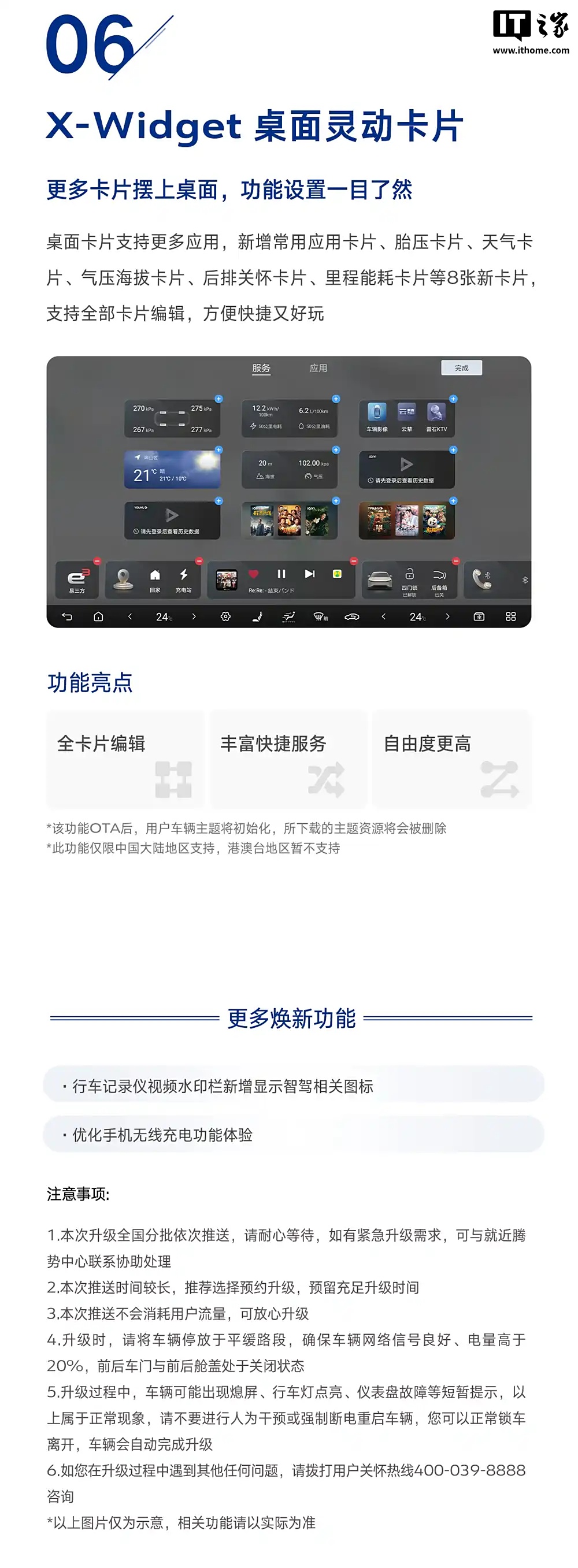 IT之家 2 月 24 日消息,比亚迪腾势旗下中大型轿车腾势 Z9GT 迎来了一次重要的 OTA 升级。此次升级涵盖多项智能驾驶与安全功能的优化与新增,包括易三方水平车位泊车、高速爆胎稳定控制、城市领航环岛通行及掉头功能、AI 大模型影像识别、哨兵模式以及 X-Widget 桌面灵动卡片等。此外,升级还优化了手机无线充电体验,并在行车记录仪视频水印中新增智能驾驶相关图标。