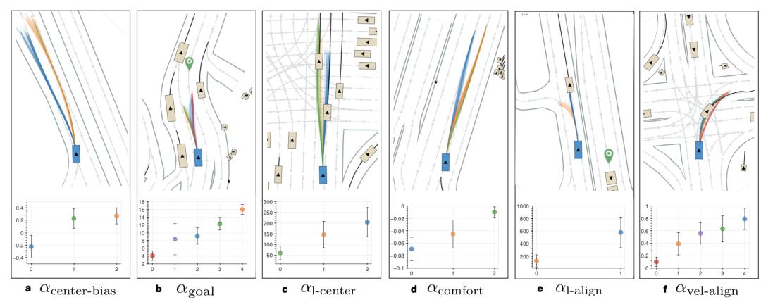 此外,研究者还深入探讨了GIGAFLOW策略的行为特性,包括其长远决策能力,能够根据未来可能发生的事件(如150米外的路障)调整当前的驾驶行为;多样化驾驶风格,策略可以通过调整参数化条件展现从谨慎到激进的多种驾驶风格;以及在需要多主体协调的复杂场景(如车流合并)中,策略展现出灵活且自然的行为。