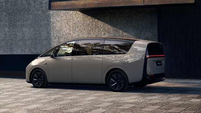 新车采用了与去年发布的理想首款纯电汽车 MEGA 相似的设计语言,包括前脸、大灯造型,前半部分的轮廓酷似“子弹头”。不过,车尾则是与理想 L 系列的 SUV 车型更为相似。