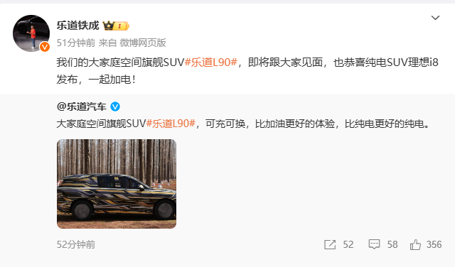 凤凰网科技讯(作者/冯皓钦)2月25日,乐道汽车总裁艾铁成通过个人微博宣布,品牌全新旗舰SUV车型乐道L90即将发布,官方将该车定位为“大空间家庭旗舰SUV”。