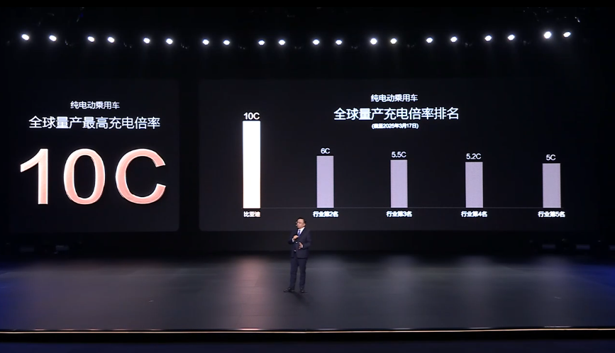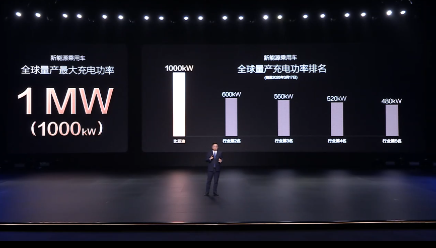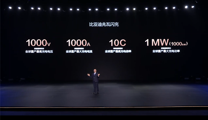 IT之家 3 月 17 日消息,在今晚的发布会上,比亚迪正式发布了全球首个量产乘用车全域千伏高压架构,可实现全球量产最大充电功率(IT之家注:1MW,1000kW)及全球量产最高充电倍率(10C)。
