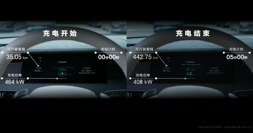 此次发布的比亚迪兆瓦闪充,具备 1000V 最高充电电压、1000A 最大充电电流,在比亚迪汉 L EV 的测试车上可实现 1 秒 2 公里的全球量产最高峰值充电速度,充电 5 分钟补充续航 407km。