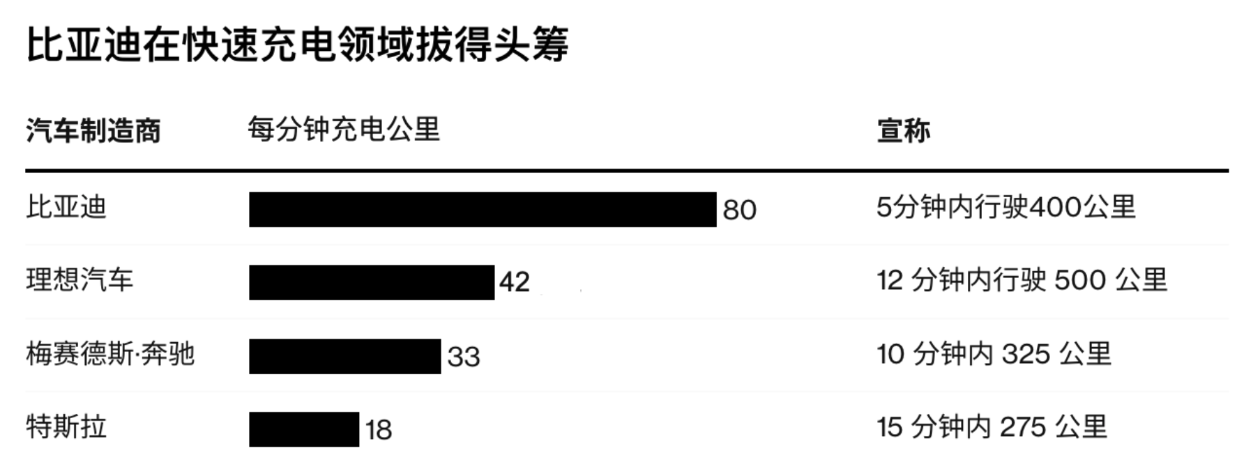 比亚迪称,该充电速度远快于特斯拉的超级充电桩,后者在10分钟内可补充275公里的续航。在其他竞争对手中,奔驰的新入门级CLA纯电轿车可以在充电10分钟充电后达到325公里的续航。