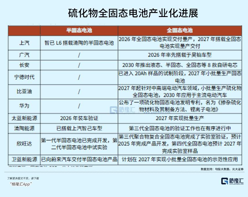 2月15日,在第二届中国全固态电池创新发展高峰论坛上,比亚迪锂电池有限公司CTO 孙华军表示,比亚迪将在2027年左右启动全固态电池批量示范装车应用,2030年后实现大规模上车。此前,广汽、长安也宣布进展,2026年装车后逐步推进量产。