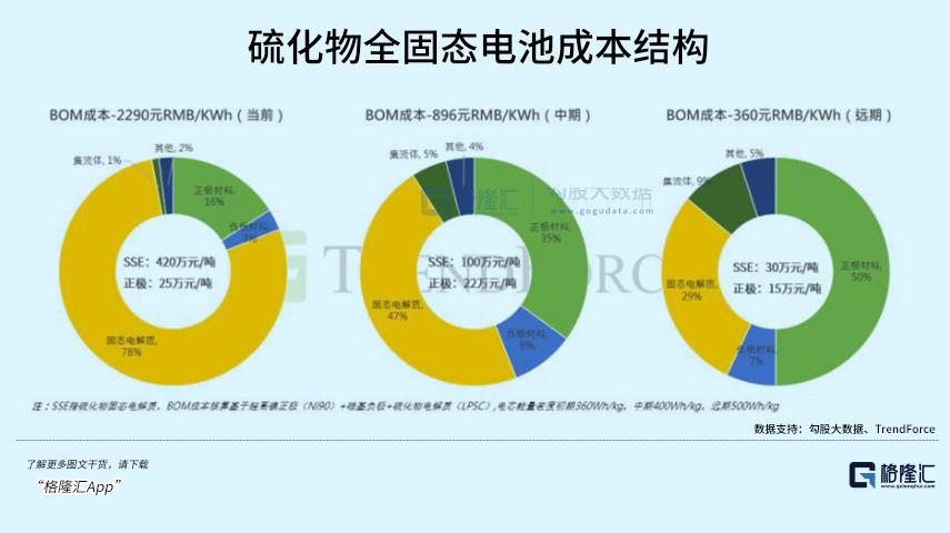 TrendForce预估,硫化物基固态电池产业化初期电芯BOM成本在1-2 元/Wh。