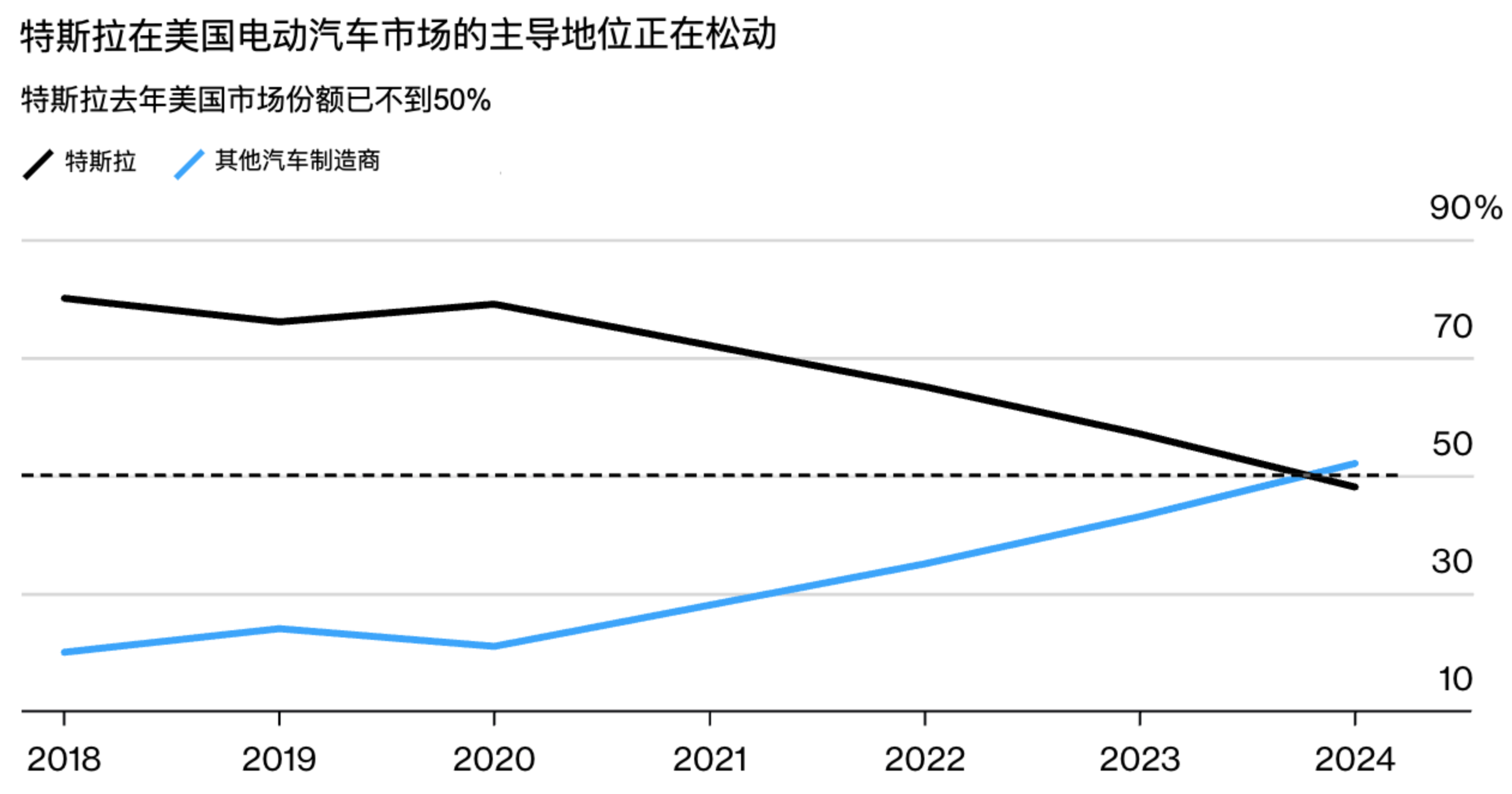 特斯拉美国市场份额已不到50%