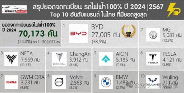 2023年,日系品牌在泰国的汽车市场占有率仍然高达78%。但就细分的纯电动车类别来看,目前中国品牌占据了89%的市场份额;除了上述见到的四个,目前在泰国销售的中国新能源品牌还有长城、奇瑞、长安、埃安等。