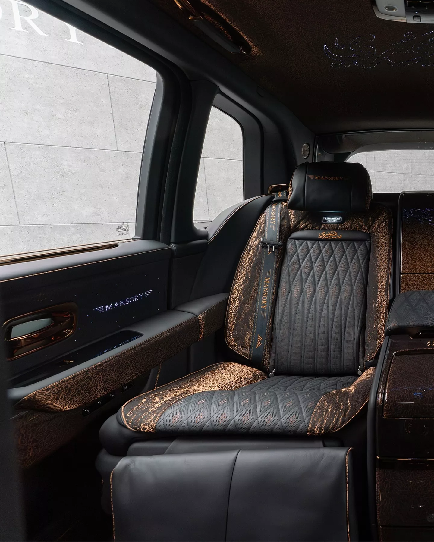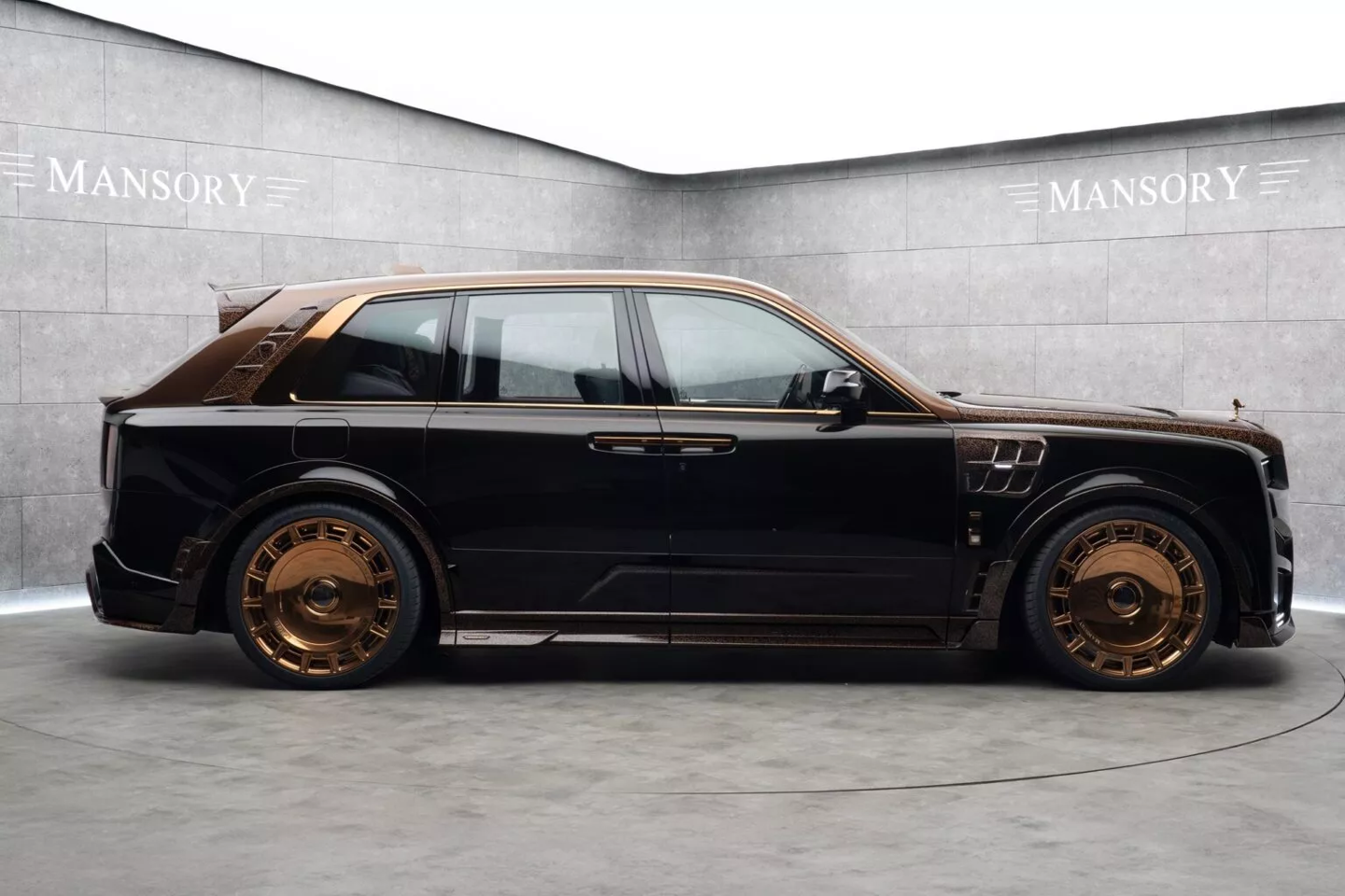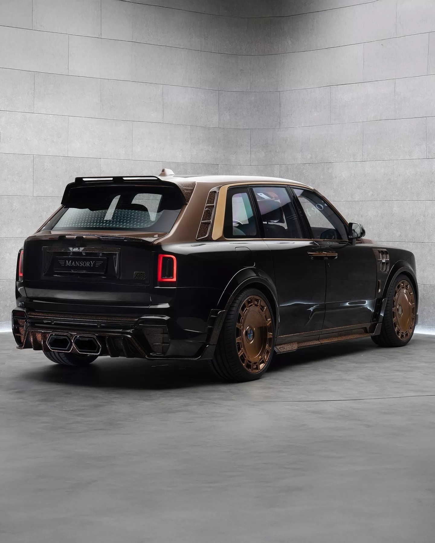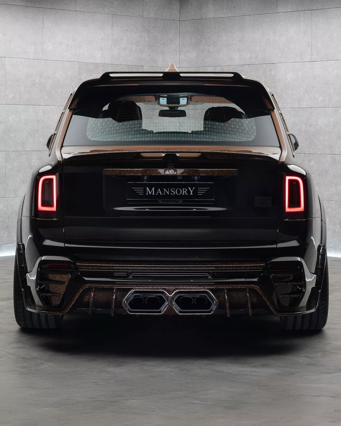 车辆配备 24 英寸铜色锻造轮毂,车门把手和侧窗边框亦加入铜色元素,前翼子板新增装饰性的假通风口。车尾部分包括一个固定式扰流板、小型扰流唇,以及采用棕色涂装并镌刻阿拉伯文字的扩散器,中央排气布局也经过调整。