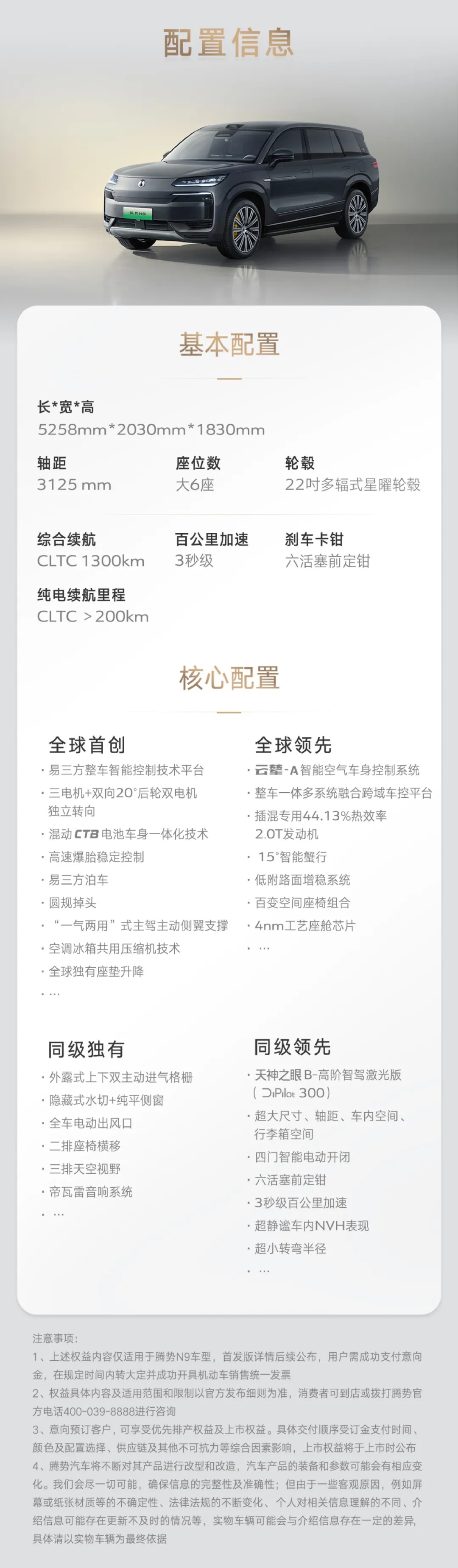 定位“科技安全全能 SUV”的比亚迪腾势 N9 已于今年 2 月开启全国预售,预售价区间为 45 万-55 万元。该车全球上市发布会已定档 3 月 21 日,届时将公布最终上市价格,IT之家将带来详细报道。