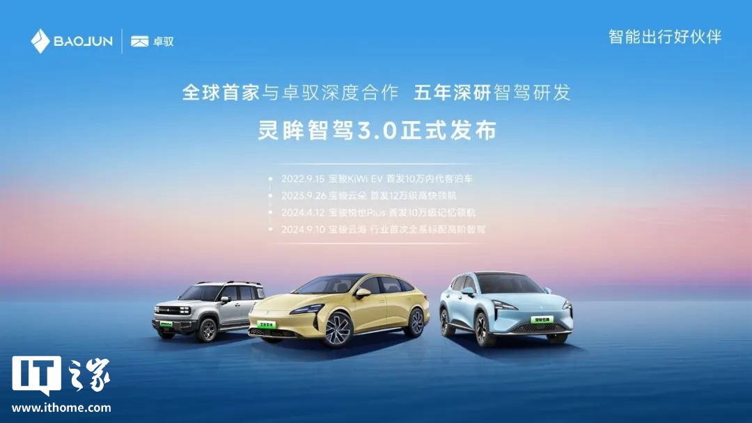 IT之家 3 月 21 日消息,宝骏享境灵眸智驾 3.0 系统今日亮相,该系统由宝骏与卓驭(原大疆车载)合作开发。