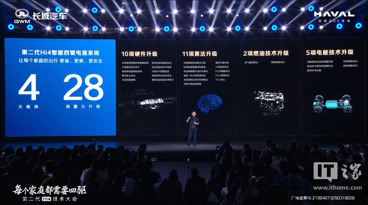 IT之家 3 月 21 日消息,在目前正在进行的长城哈弗第二代枭龙 MAX SUV 预售会中,长城汽车公布了旗下二代 Hi4 智能四驱电混系统的技术细节。