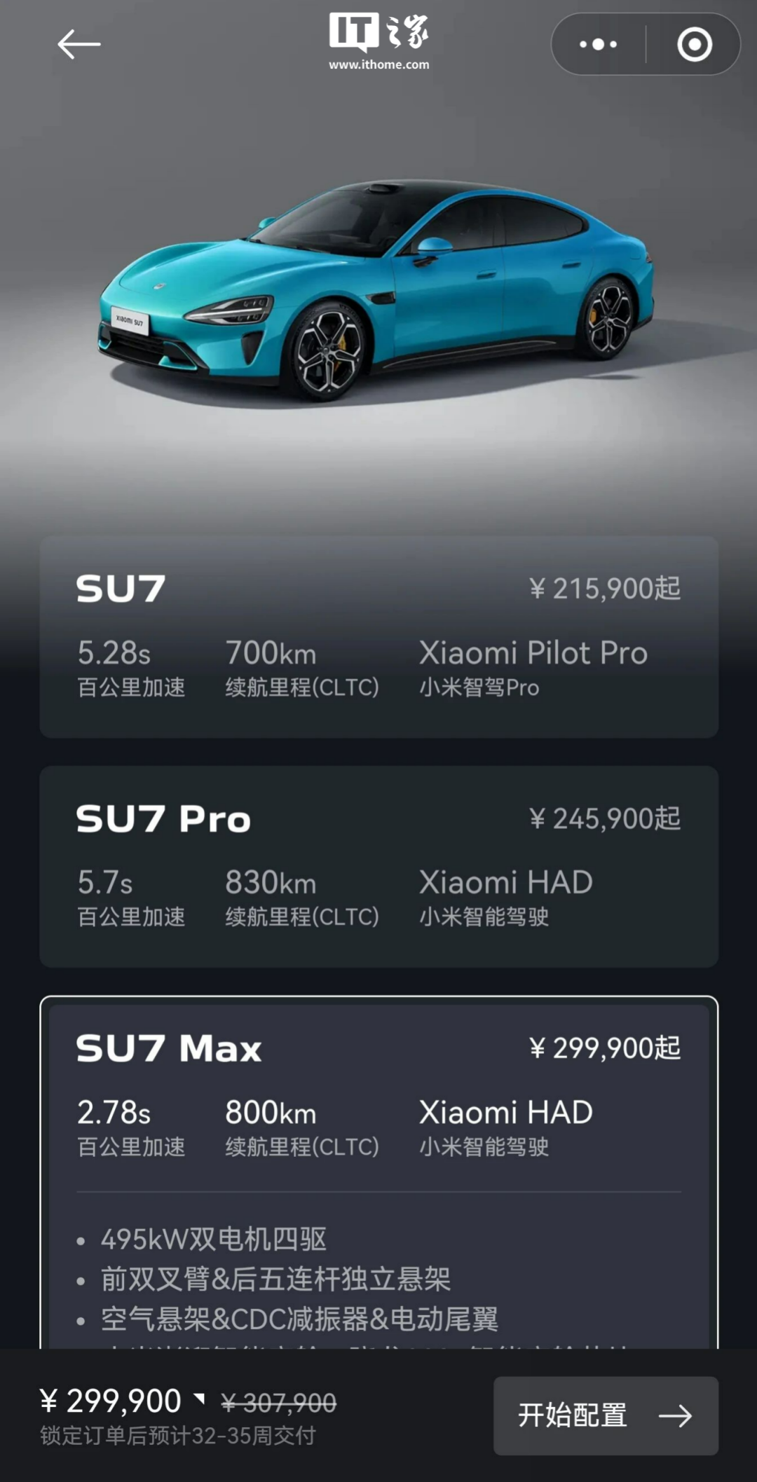 SU7 Max 版:32-35 周。