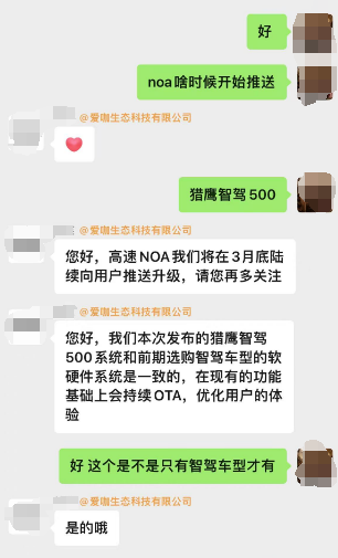 恰好,咱们差评有位开 V23 401 两驱智驾版的同事,他的 4S 对此的解释是之前买了智驾版的车型,都可以免费 OTA 为猎鹰 500 智驾,硬件是一样的。