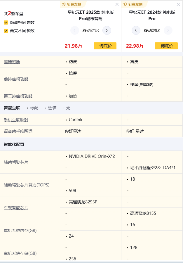 星际元 ET 纯电 PRO 版真皮换仿皮,但价格降了一万,还标配智驾。