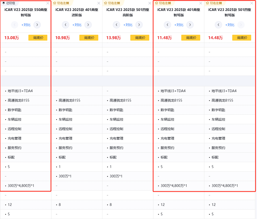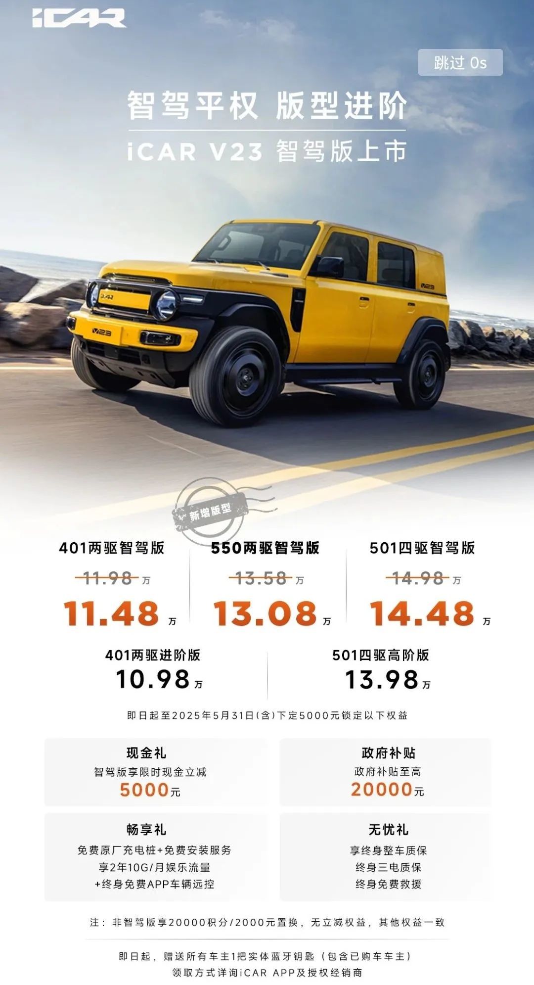 脖子哥在这得提醒一句,只有小蚂蚁、风云 A9 、 iCAR 是明确有智驾版的。其余的车型都是价格变动,智驾版并未上线,还得再等等。