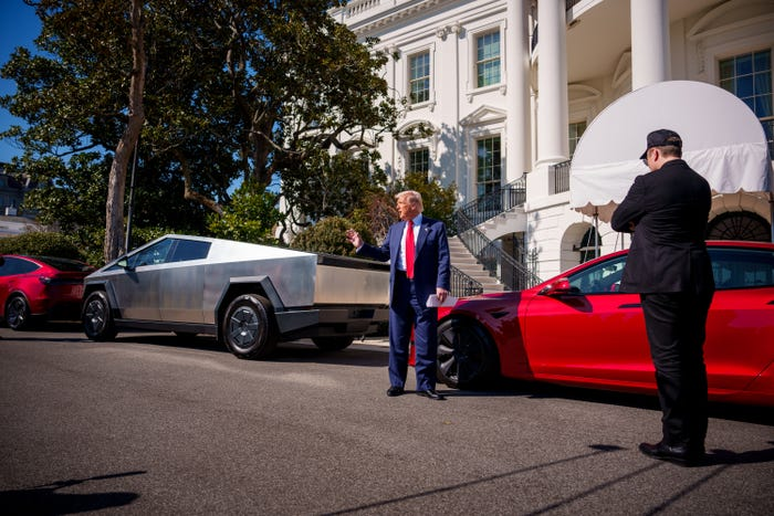 上周,特朗普总统在白宫举行了一场实际上的宣传活动,在南草坪上一排特斯拉汽车前合影留念。特朗普同意购买一辆Model S,并在活动前的Truth Social(特朗普创办的社交媒体平台)帖子中写道,他的购买行为是 “对马斯克这位真正伟大的美国人的信心和支持的表现”。特朗普称他会开出一张8万美元的支票,但目前尚不清楚他是否真的这么做了。