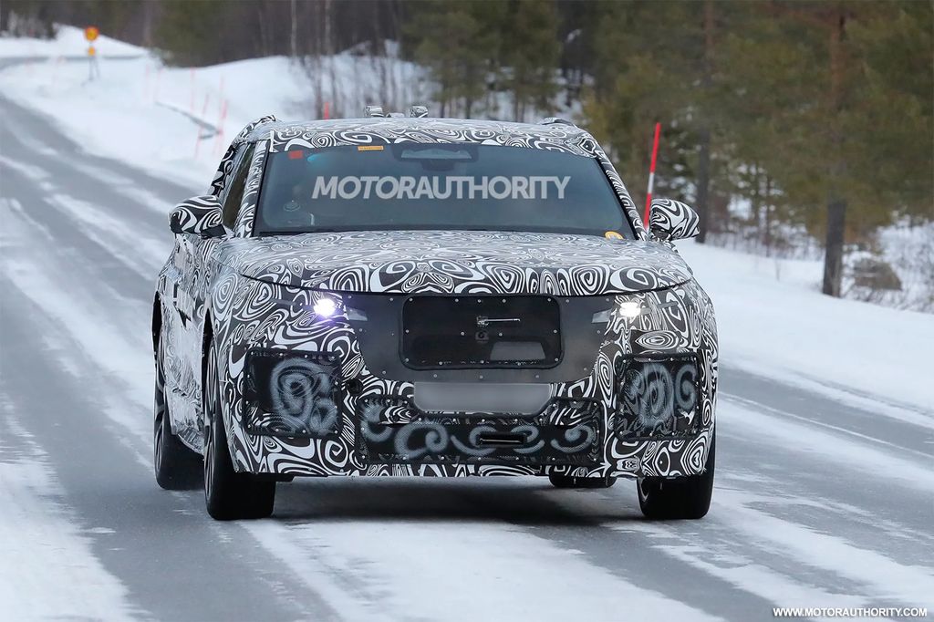 外观方面,测试原型车比现款揽胜和揽胜运动版更低、更宽,车身也更长,整体造型更加流线型,符合空气动力学优化需求。