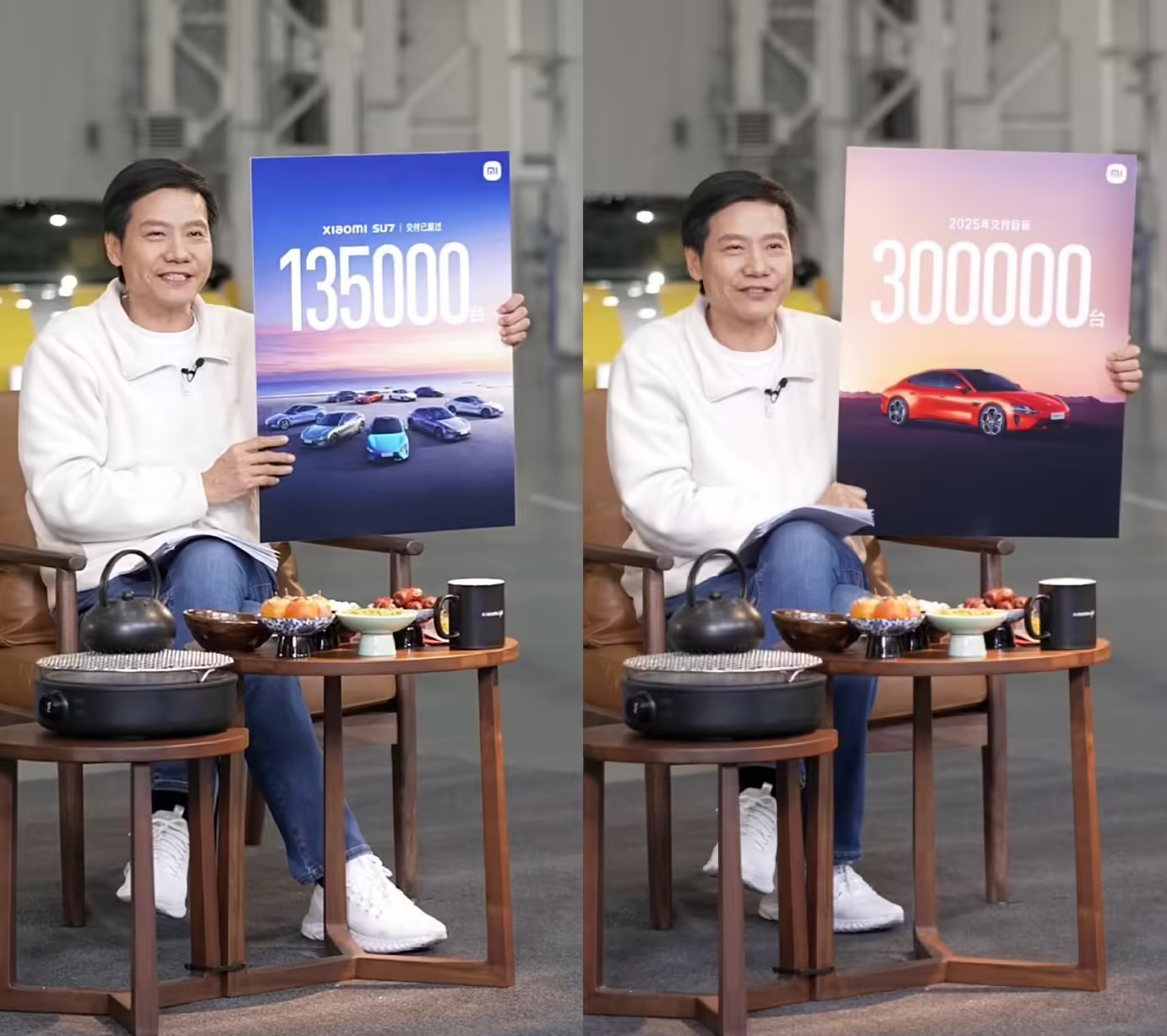 雷军曾在去年 12 月 31 日的围炉跨年直播活动中透露,小米汽车 2024 年交付超 13.5 万辆,2025 年交付目标 30 万。