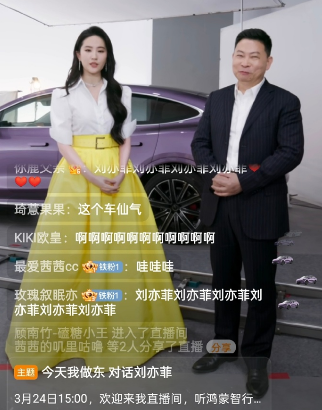 IT之家 3 月 24 日消息,华为常务董事、终端 BG 董事长、智能汽车解决方案 BU 董事长余承东今日下午首次对话鸿蒙智行智界品牌大使刘亦菲。