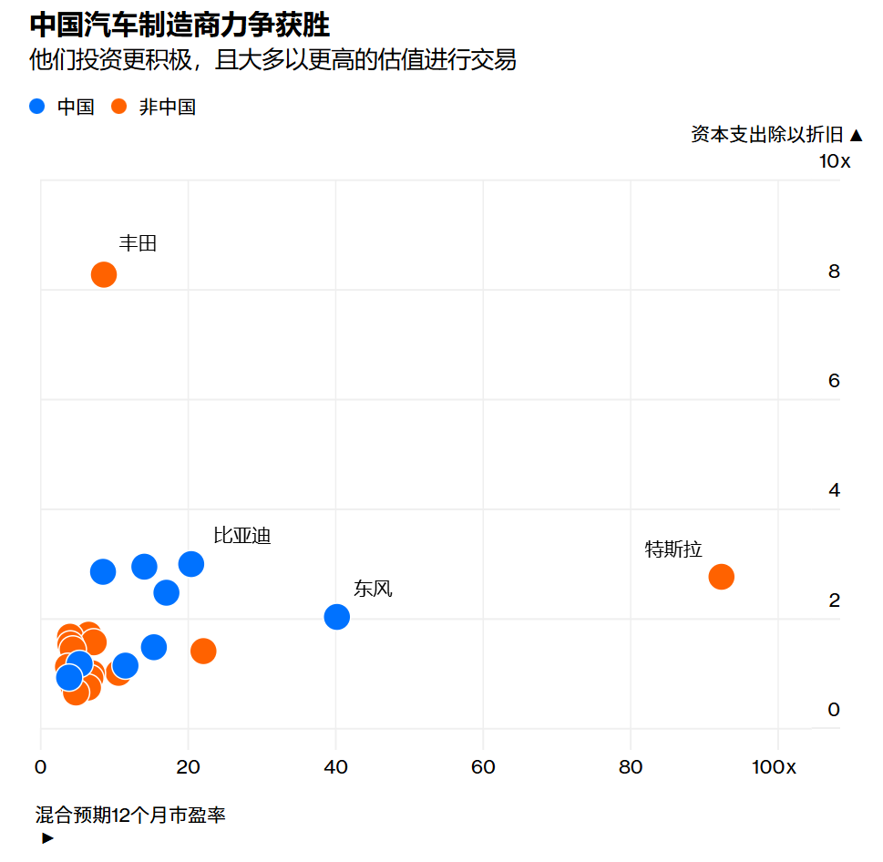 这种策略并未取得好的效果。在特斯拉之后,估值最高的汽车公司大多是那些积极投入资金以抢占广阔电动汽车市场的中国汽车制造商,如比亚迪、赛力斯、广汽集团和长城汽车。传统汽车巨头更关注保存股东资本,而不是征服全新市场,结果被甩在了后面。