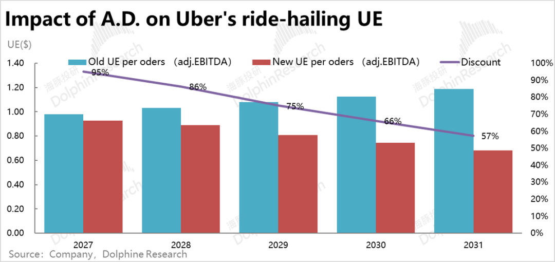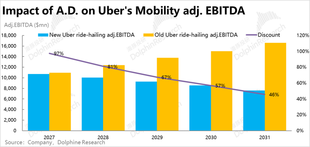 将上述影响计入后,Uber到2031年的调整后EBITDA就仅为原预测值的约46%。