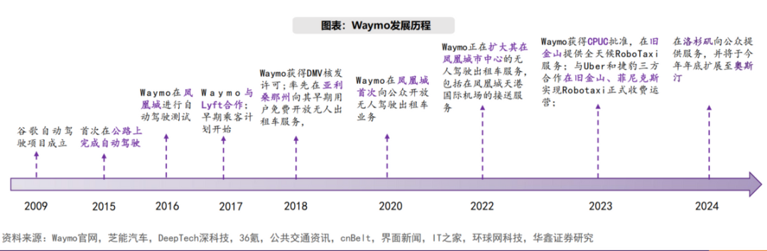 下图简要梳理了Waymo在2009年以谷歌旗下自动驾驶项目部门的身份成立,与2020年首次在凤凰城向公众开放无人驾驶网约车服务,至今已拓展到在4个市场提供公众服务的发展史,我们就不展开叙述。