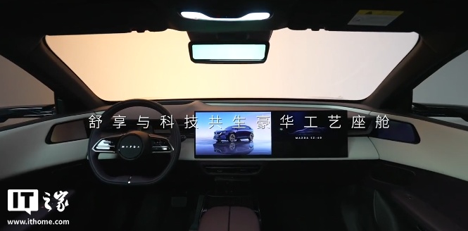 该车外观、内饰均采用双色设计,搭配黑色悬浮车顶。座椅采用钛色金属织物装饰,26.45 英寸 5K 一体式大屏采用“超窄边框、超薄触感、超快响应”,此外还搭配 23 扬声器 + 7.1.4 杜比全景声。