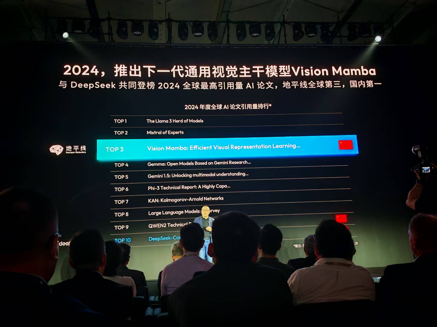 2023年,地平线在业界首个公开发表的端到端自动驾驶大模型UniAD荣获CVPR2023最佳论文。2024年,地平线推出下一代通用视觉主干模型Vision Momba。与deepseek共同登榜2024全球最高引用量AI论文,全球第三,国内第一。