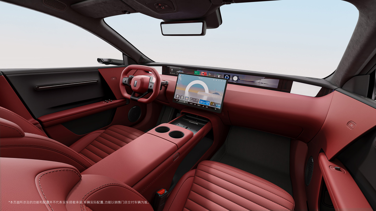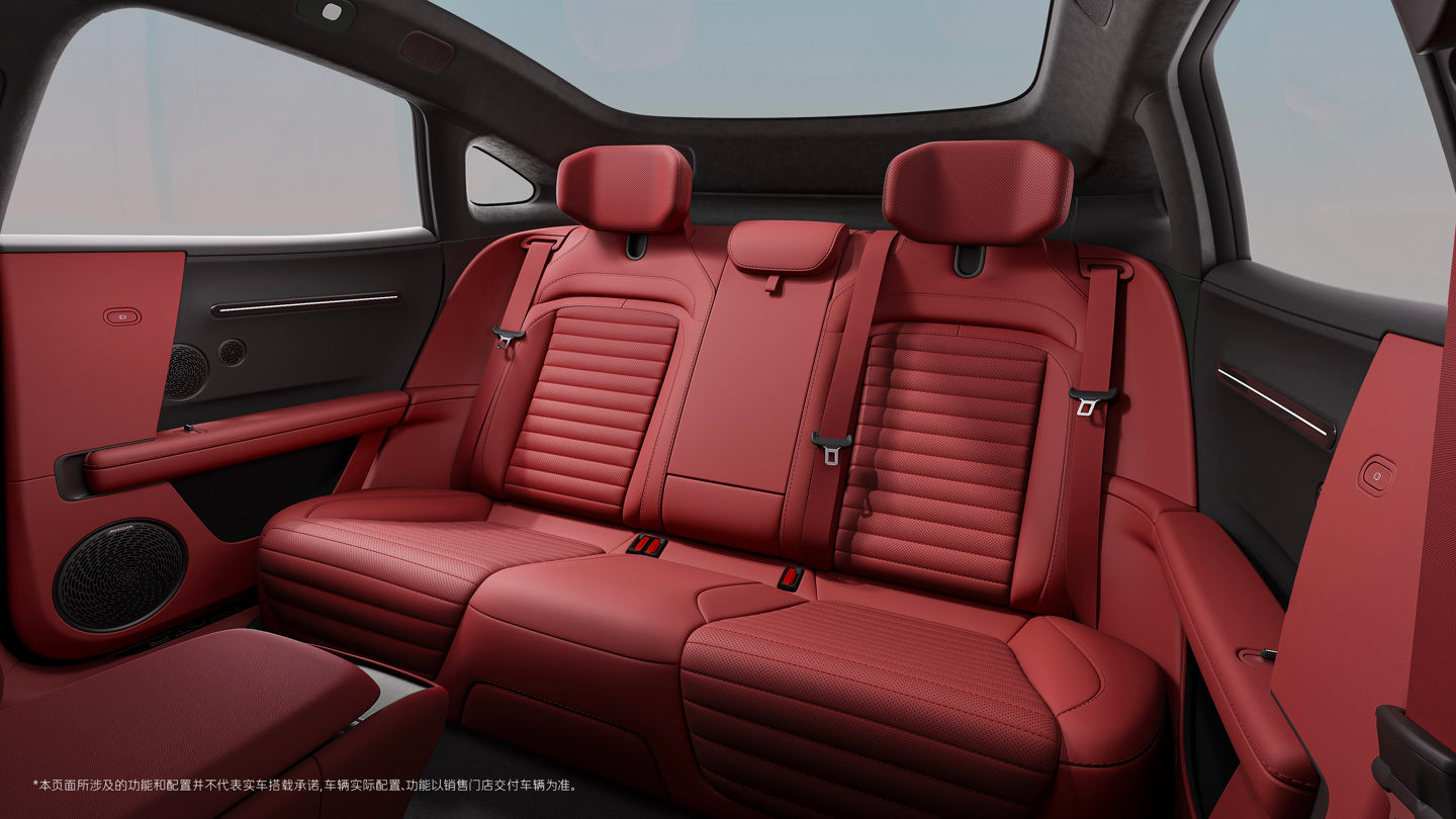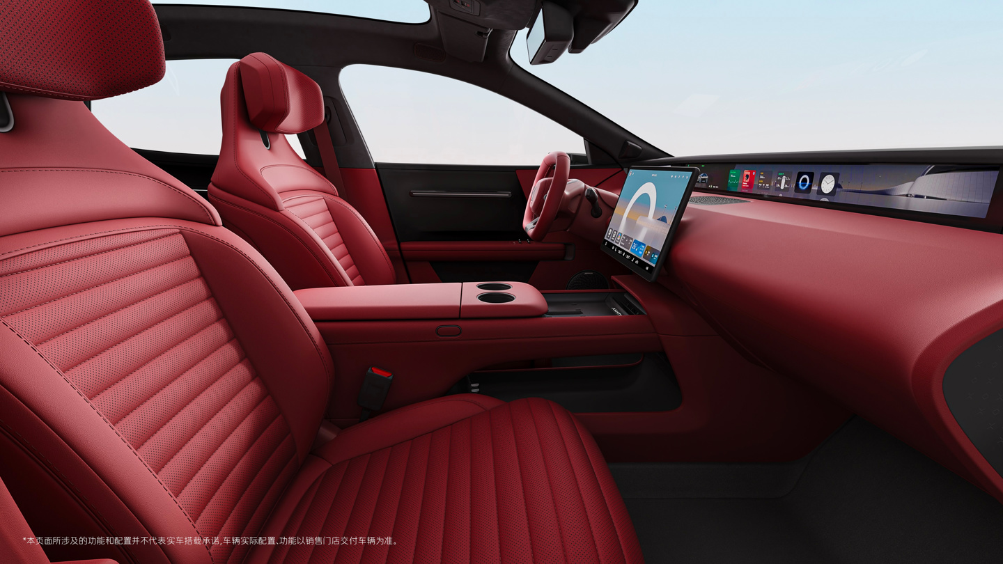 新车拥有“舒压豪华座舱”,全系搭载前排电动门,支持智能防撞 / 智能悬停。新车的其他标配还包含流媒体内后视镜、英国之宝音响、双零重力座椅。其内饰采用 7㎡软包材质,可选全新的“岱红”配色。车内配备了 25 个扬声器,支持 7.1.4 全景声,输出功率可达 2016W。