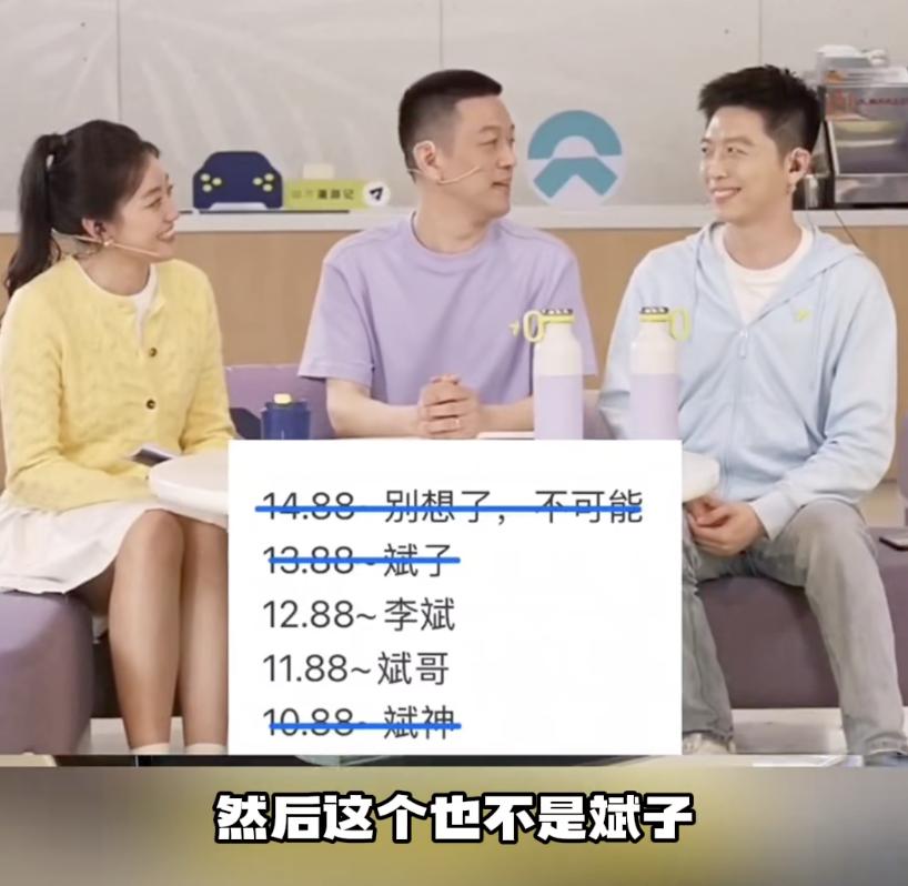 不过,有趣的一点在于猜价格的采访环节中,主持人将预判的价格分为五个档次。其中,卖10.88万元的话李斌就是斌神;11.88万元起是斌哥;12.88万元起是李斌;13.88万元就是斌子......