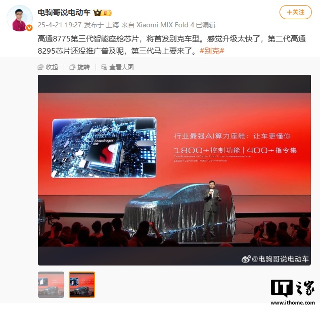 除此之外,别克还宣布行业首发高通最强算力第三代 SA8775P 芯片(8295P 是第二代),而辅助驾驶部分则将联合 Momenta 进行定制。