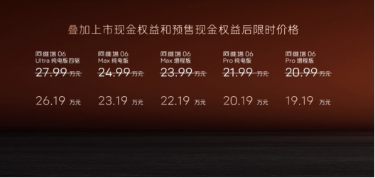 凤凰网科技讯(作者/于雷)4月21日,阿维塔科技19日在重庆举行新品发布会,正式推出定位为“智美豪华运动轿车”的阿维塔06。该车型提供纯电与增程双动力系统,官方指导价区间为20.99万-27.99万元,限时优惠后起售价为19.19万元,预售首批用户最快将于4月20日开始交付。