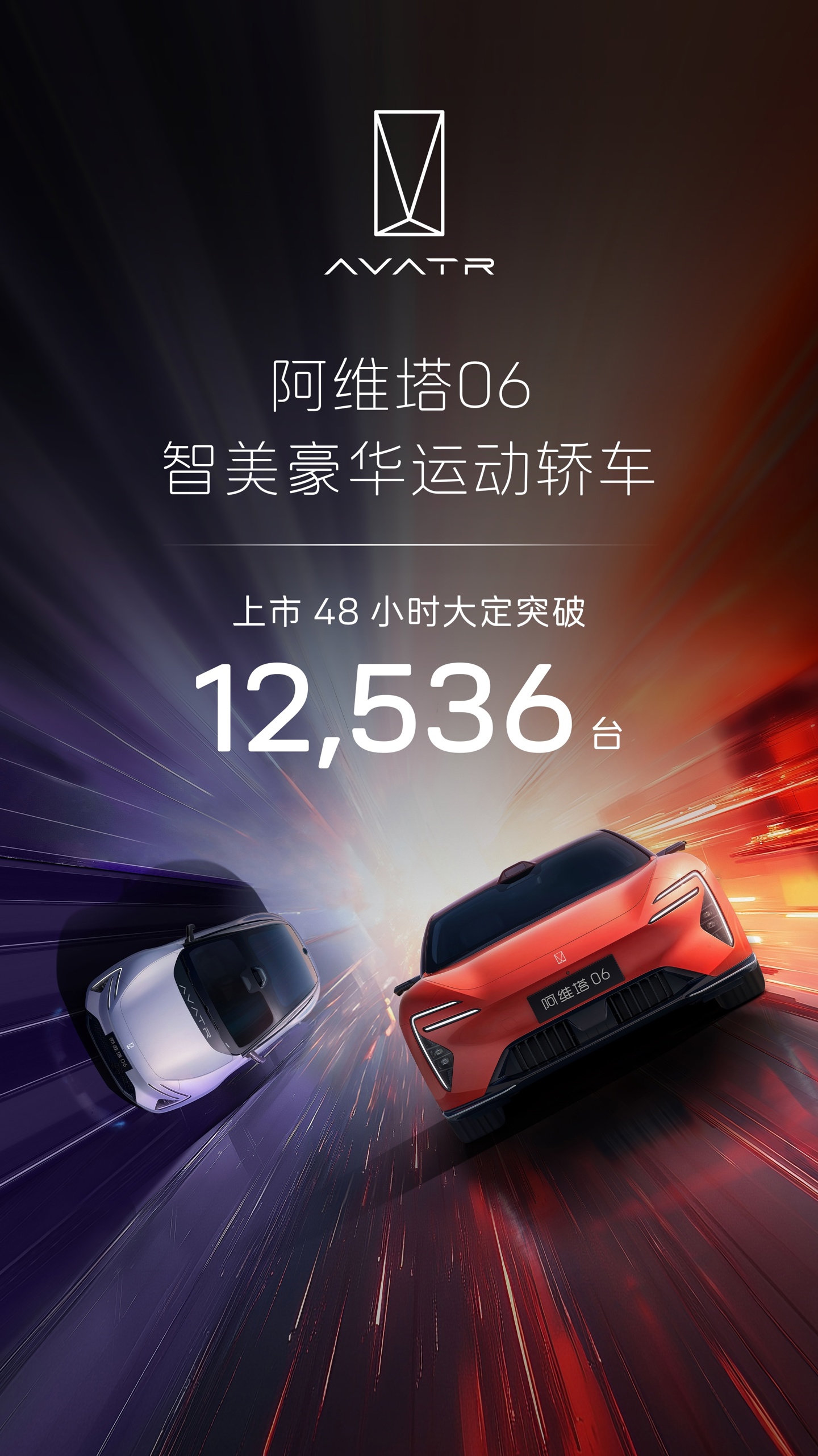 阿维塔科技官方微博今日发布“战报”:阿维塔 06 上市即交付,48 小时大定突破 12,536 台。