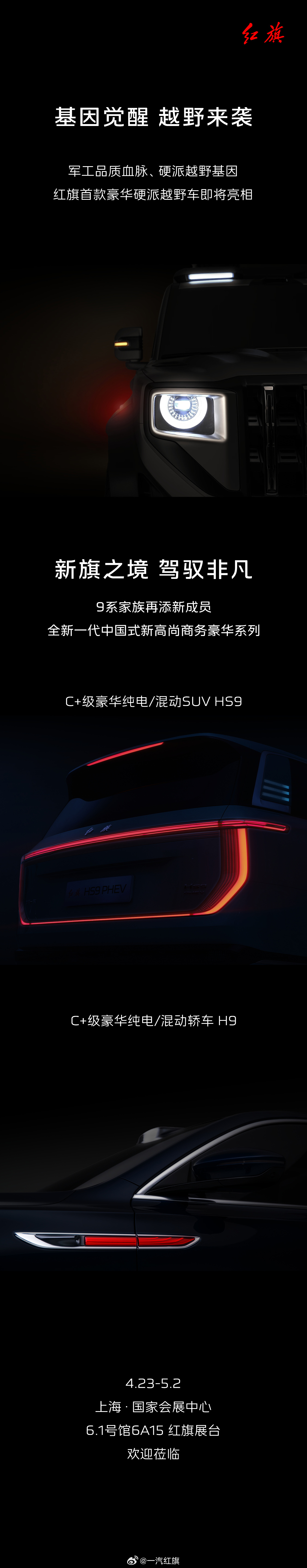 IT之家 4 月 22 日消息,一汽红旗官微昨日发文宣布,红旗三款重磅全新车型即将首发亮相。