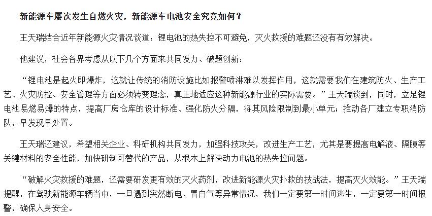 毕竟电池这玩意本身就是靠正、负极发生氧化、还原反应来工作的,自带还原剂和氧化剂,目前的技术都只能让它烧的慢一点。国家消防救援局消防监督司的指挥长王天瑞之前也说过,锂电池热失控不可避免。