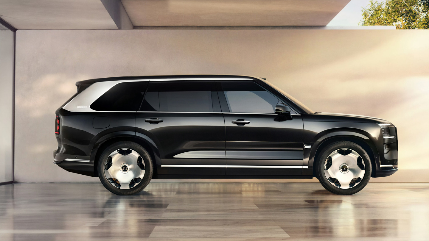 从外观来看,新车的线条方正硬朗,大块头的全尺寸姿态显露“不怒自威”的霸气,大面积镀铬竖条前脸、22 英寸镜面锻造“大饼”轮毂等设计元素更显豪华,整体沿用了系出同门的豪华 MPV 极氪 009 的家族风格,整体设计并不显得过于张扬。