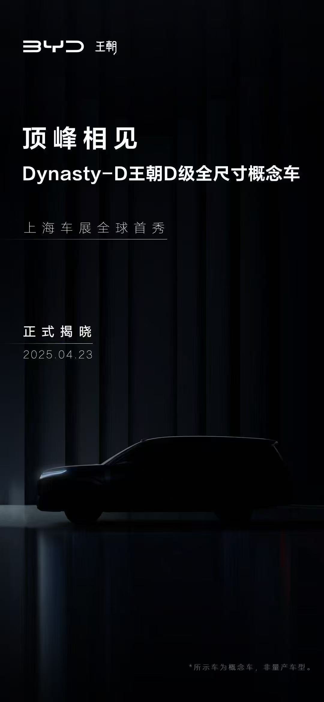 IT之家 4 月 22 日消息,比亚迪今日进一步预热了即将登陆明日上海车展的全新车型 —— 两款预计定位中高级车的概念车,王朝网的 D 级全尺寸概念车 Dynasty-D、海洋网的全新四门轿跑 Ocean-S。