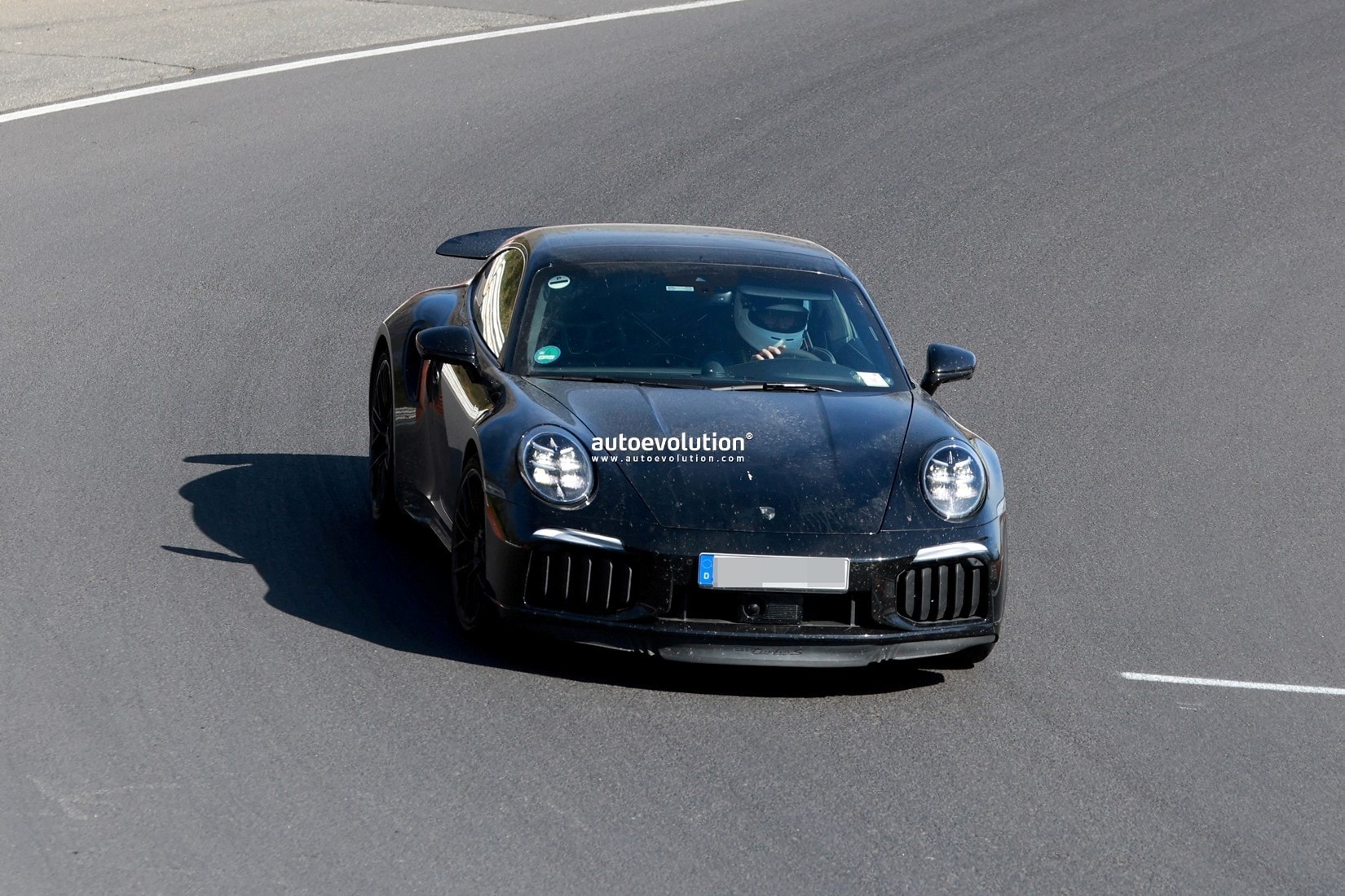 该媒体分享了一组路测图,展示了一辆没有伪装的 2026 款 911 Turbo(992.2)。外观方面,保时捷重新设计前保险杠,搭配一对日间行车灯和新款大灯,采用更突出的进气口,进气口内嵌可调节的垂直叶片,提升空气动力学表现。