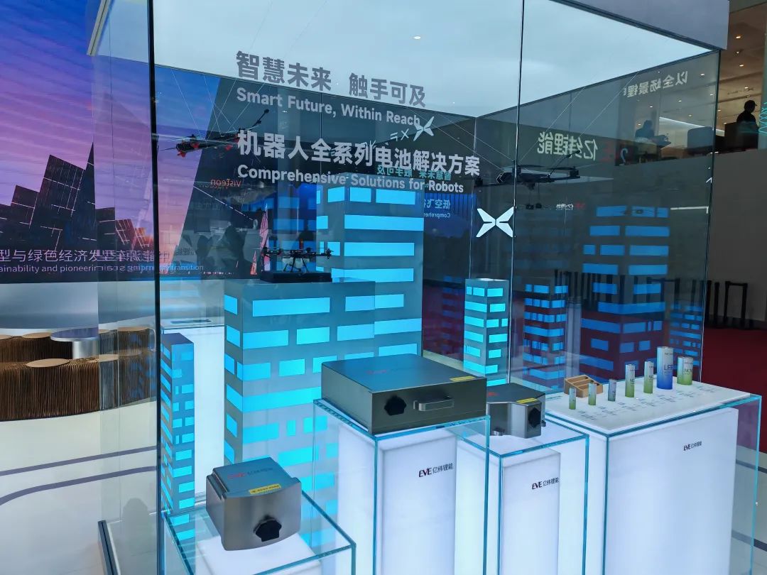 亿纬锂能展台的机器人电池解决方案。具身智能和低空飞行成为整车厂和零部件企业布局的重点。 摄/王靖扬