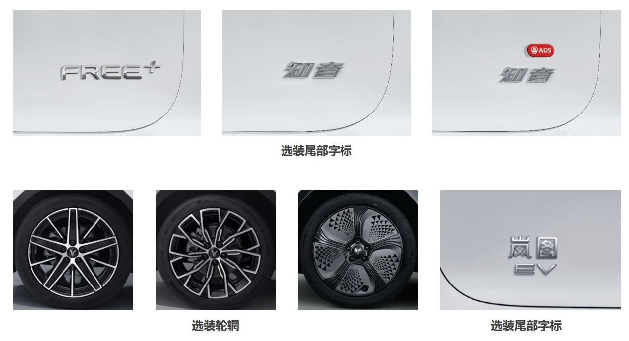 申报信息显示,这款新车长 4810mm、宽 1900mm、高 1636mm,轴距为 2925mm。除了 FREE + 的尾标外,该车还有知音、知音 ADS 等字样尾标选装,轮辋则提供三种样式可选。