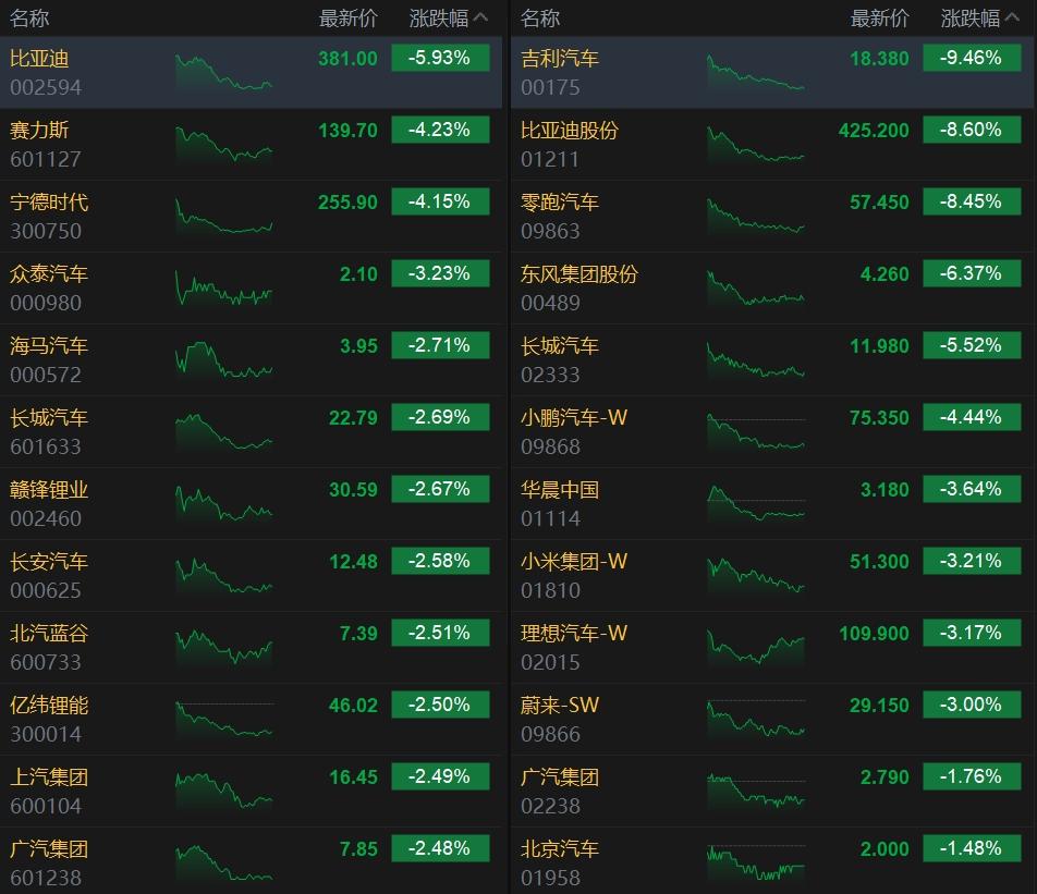 5月26日,A股、港股汽车板块集体大跌,其中比亚迪A股一度跌超6%。赛力斯、长城汽车、长安汽车、北汽蓝谷、上汽集团、广汽集团等均跌超2%。而在港股市场,情况更加惨淡,无论是传统汽车厂商,还是造车新势力无一幸免零跑、比亚迪、吉利跌幅超过8%。
