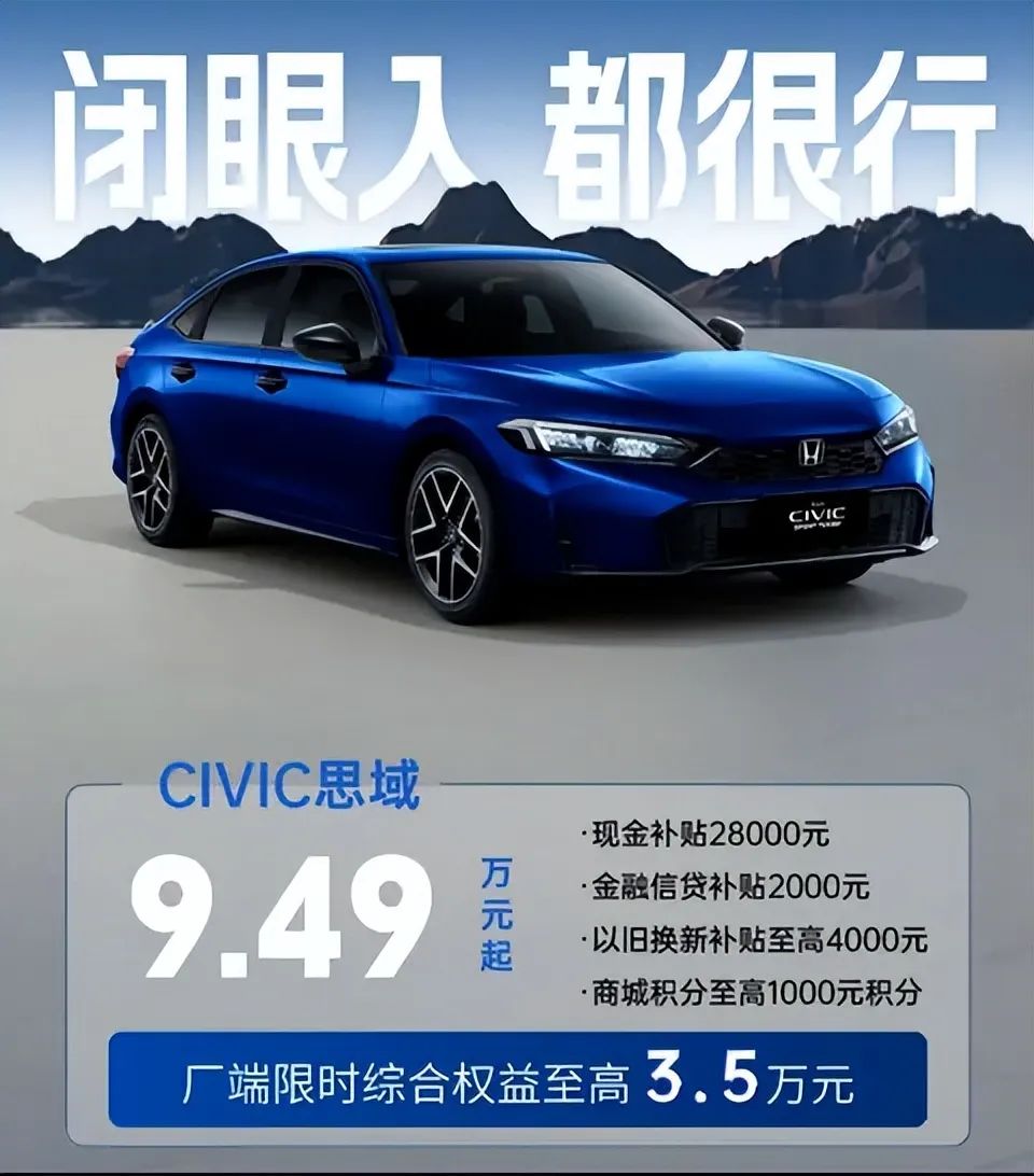 “闭眼入,都很行。Civic思域9.49万元起。”
